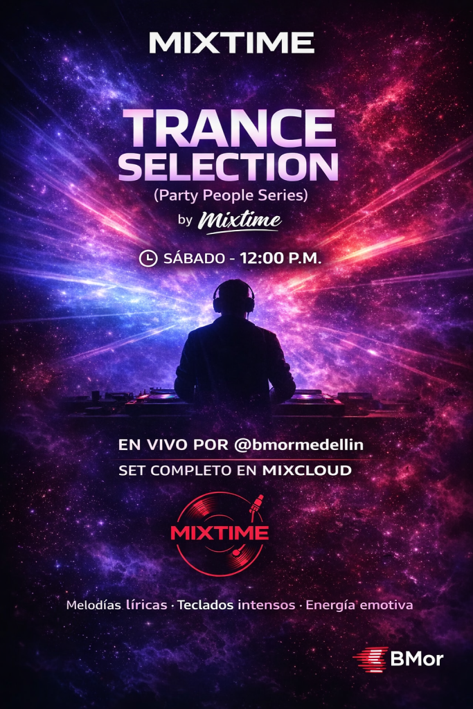 Este sabado en BMor el mediodía se convertirá en la sala trance más geande del planeta recordando los grandes éxitos de este estilo musical mezclados en vivo por Mixtime.